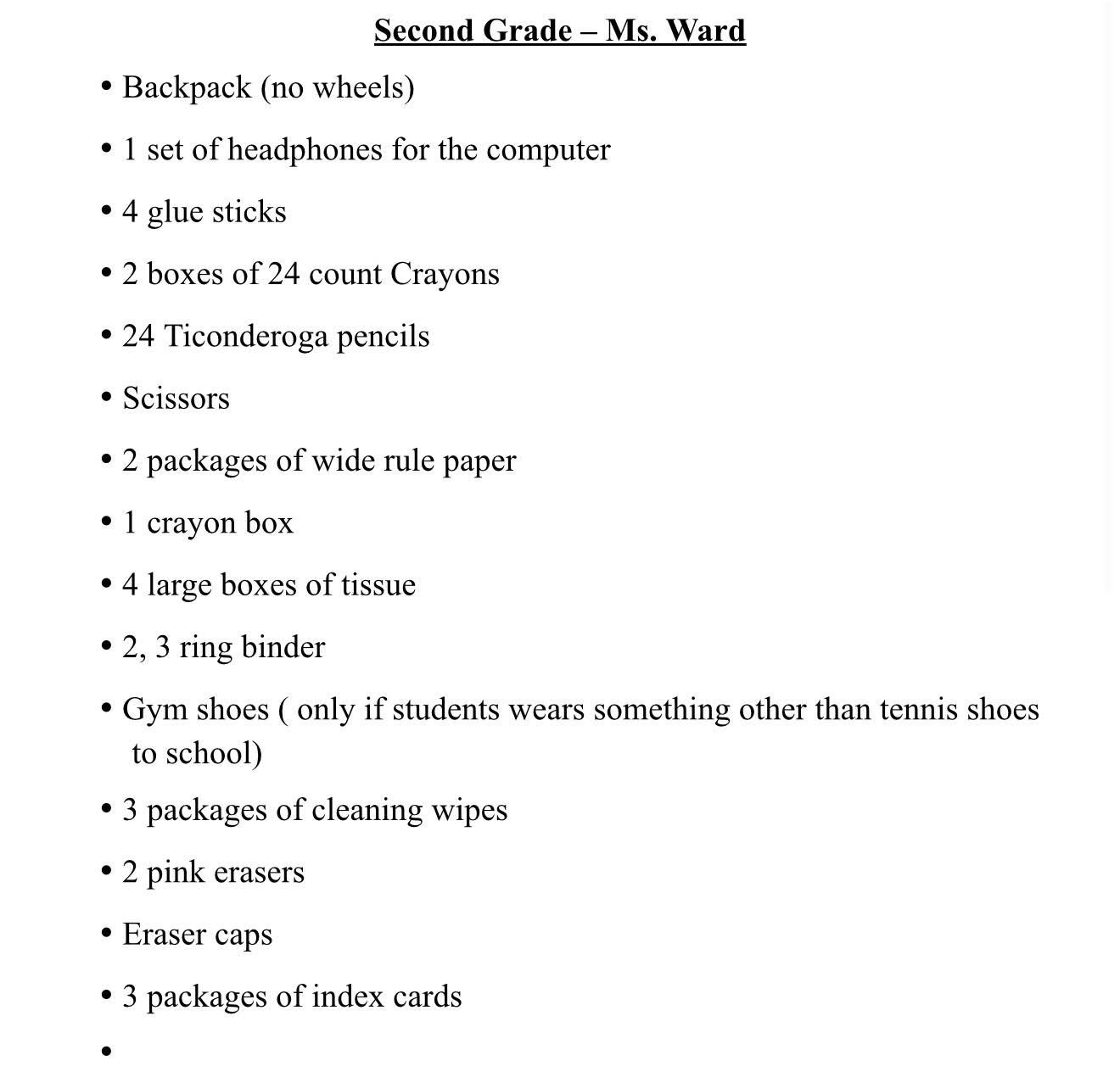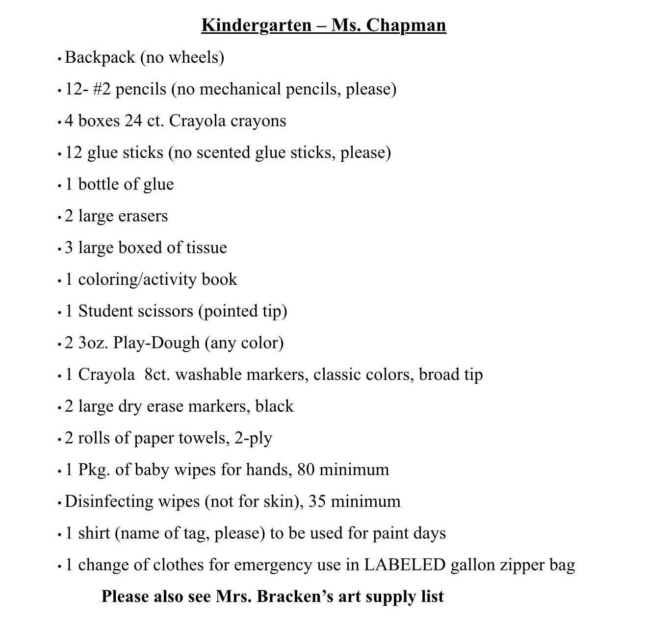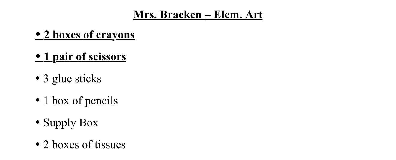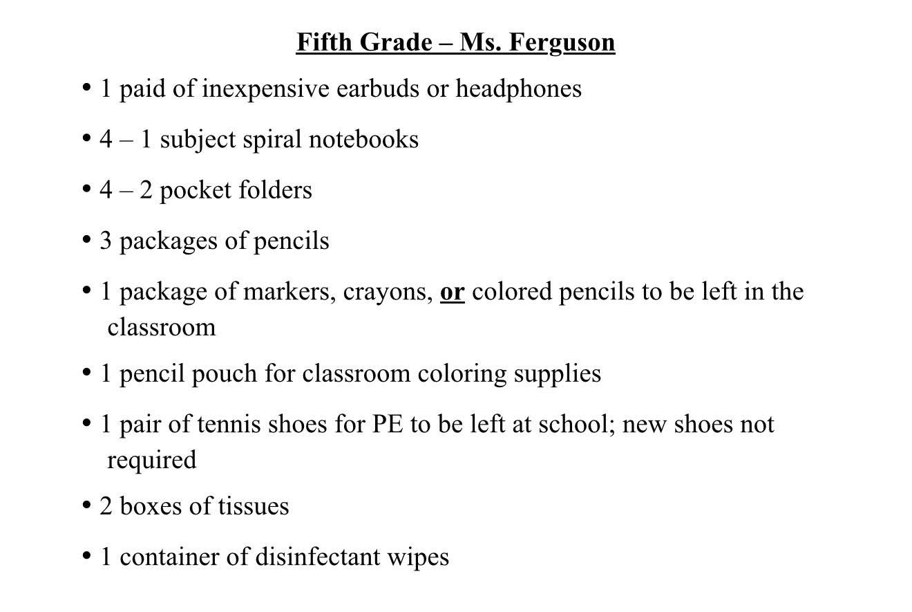 School Supply Lists 2025-2026 July 23, 2025KindergartenFirst GradeSecond GradeThird GradeFourth GradeFifth Grade6th, 7th & 8th GradesElem. ArtJr. High Art Share this: Share on Facebook (Opens in new window) Facebook Share on X (Opens in new window) X Share on LinkedIn (Opens in new window) LinkedIn