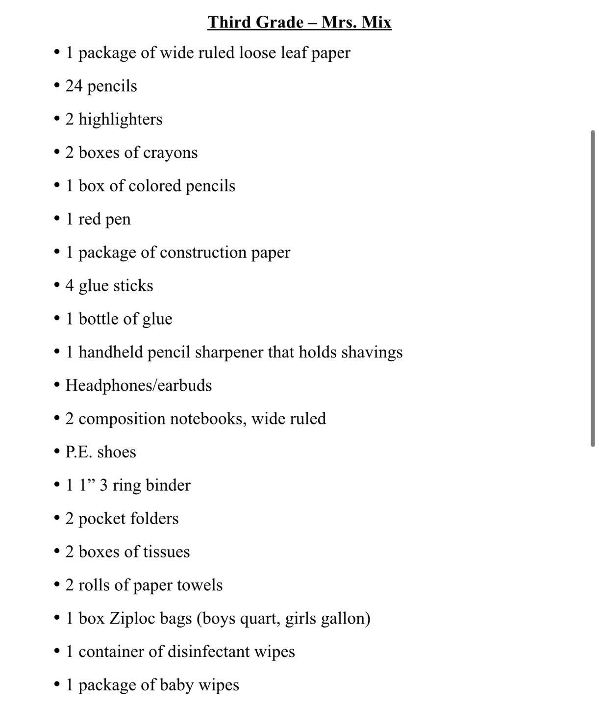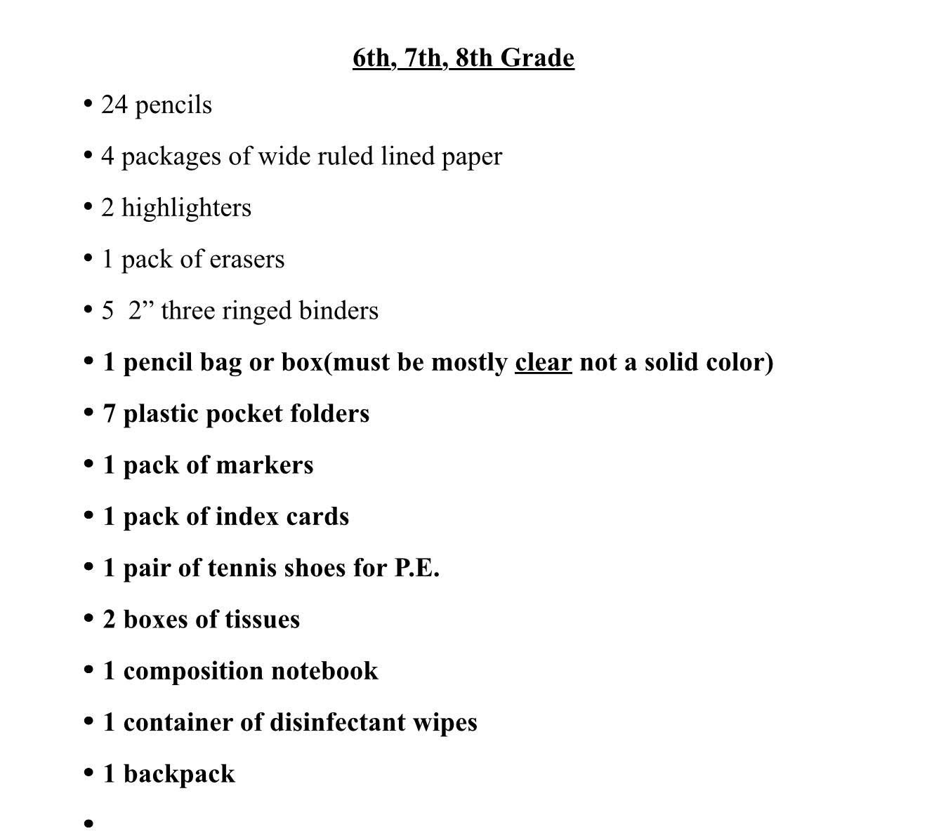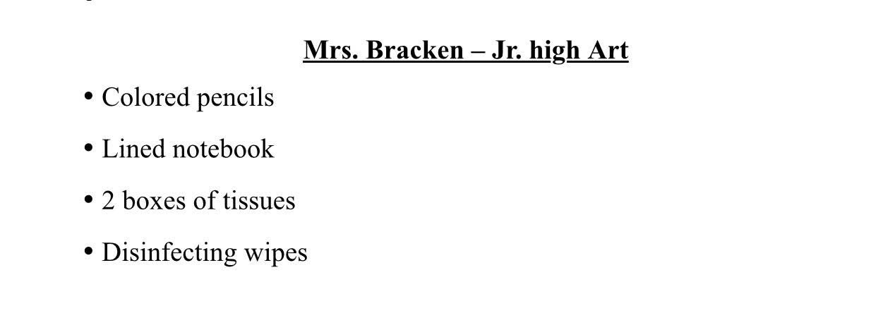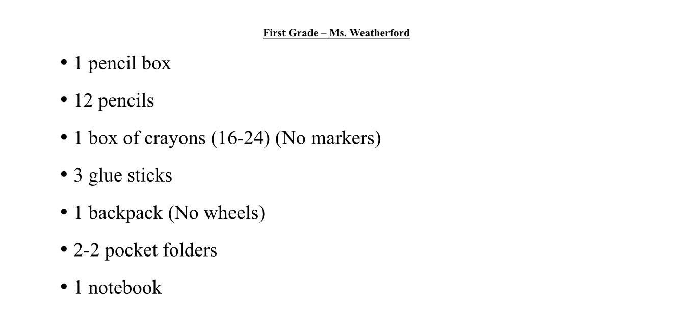 School Supply Lists 2025-2026 July 23, 2025KindergartenFirst GradeSecond GradeThird GradeFourth GradeFifth Grade6th, 7th & 8th GradesElem. ArtJr. High Art Share this: Share on Facebook (Opens in new window) Facebook Share on X (Opens in new window) X Share on LinkedIn (Opens in new window) LinkedIn